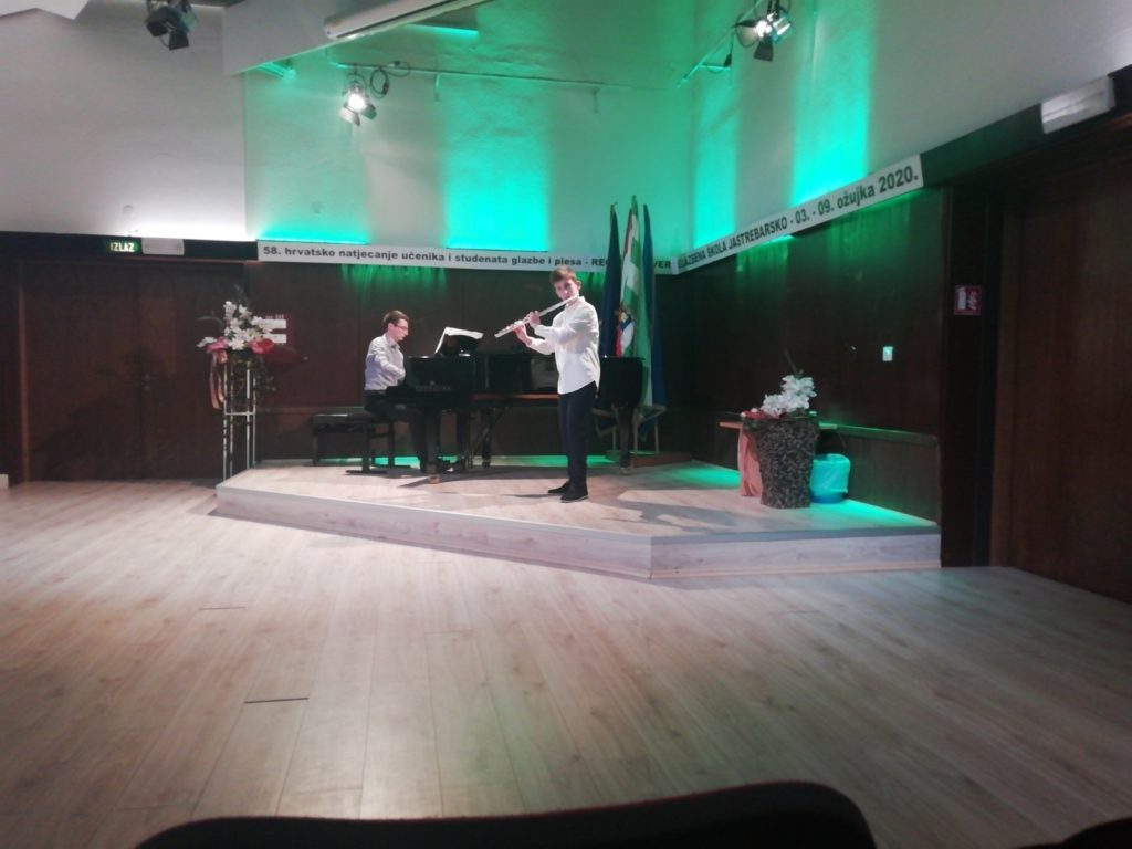Natjecanje je održano 3. ožujka u Jastrebarskom, a u 3. kategoriji discipline Flauta nastupilo je 25 natjecatelja. Bono je ocijenjen s 90,50 bodova. Čestitamo Boni na izvrsnom uspjehu, njegovoj mentorici prof. Ivani Kljajić i korepetitoru prof. Frani Fabrisu!