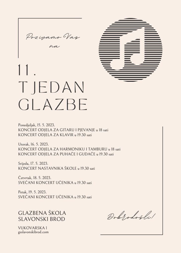 Mnoštvo prekrasnih glazbenih izvedbi prožet će ovogodišnji Tjedan glazbe, a vrata naše škole širom su Vam otvorena!