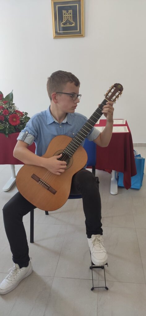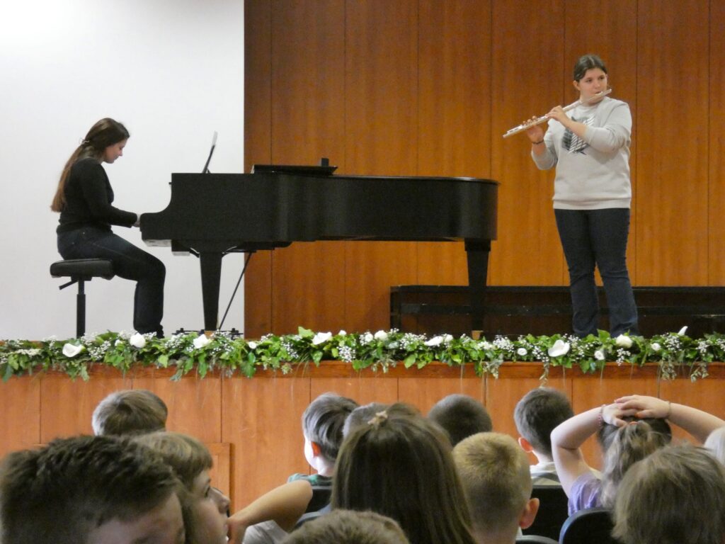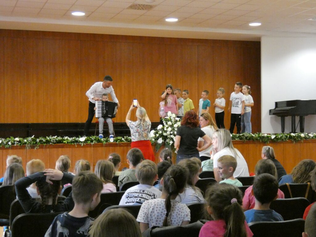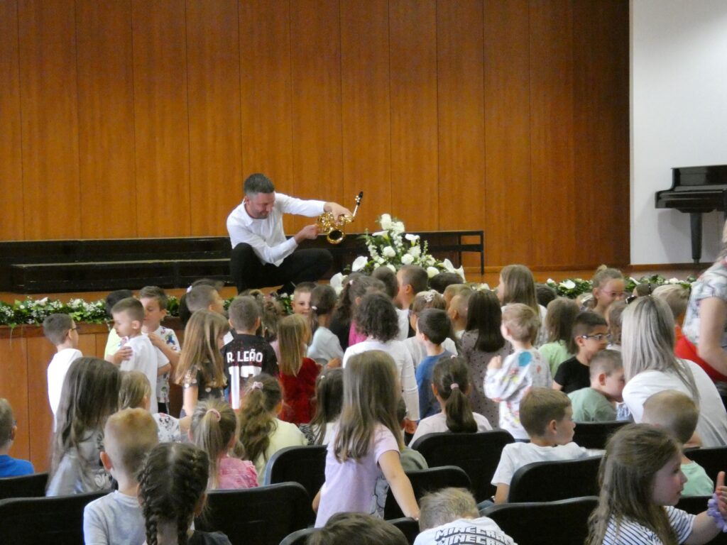 U sklopu manifestacije U svijetu bajki Ivane Brlić-Mažuranić održali smo naše uobičajene Glazbene slušaonice za polaznike brodskih vrtića. Slušaonice 16. i 19. travnja 2024. godine vodili su nastavnici Daria Tamara Rac i Karlo Đurić te su djecu upoznali s različitim instrumentima koji se uče u našoj školi.