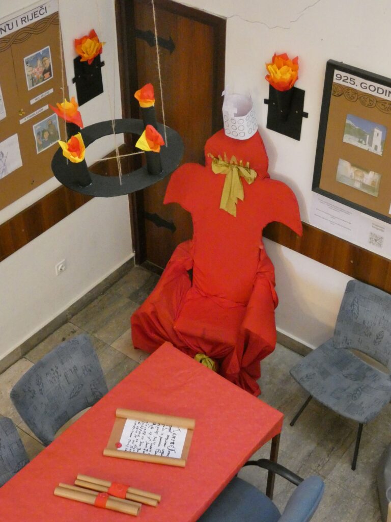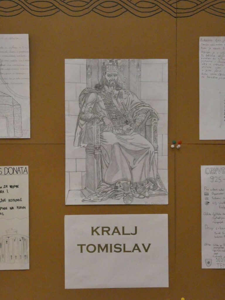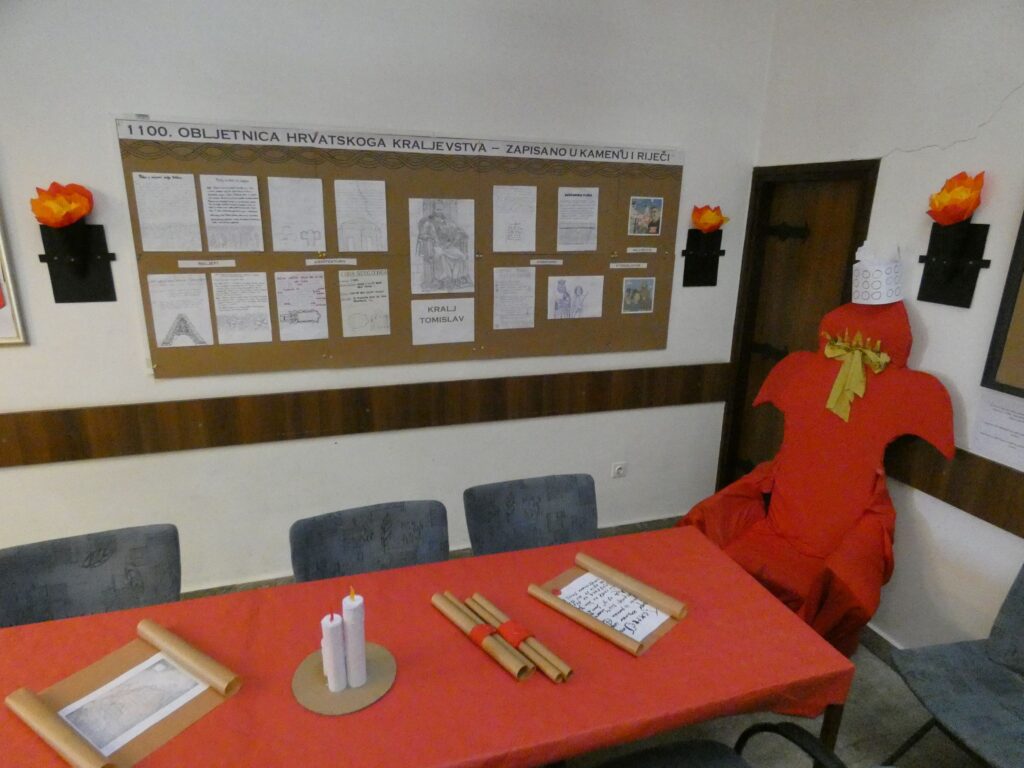 Dio škole pretvoren je u pravi srednjovjekovni kutak – prostor u kojem se može zakoračiti u doba kralja Tomislava i crkvenih sabora, razgledati učeničke radove i doživjeti kako povijest oživljava kroz istraživanje, crtanje, zamišljanje i oblikovanje. Izložba je proširena i virtualnom galerijom slika jer je učenicima omogućeno fotografiranje u srednjovjekovnom ambijentu i kraljevskoj stolici, a fotografije mogu postaviti uz pomoć QR koda te digitalnog alata Padlet.