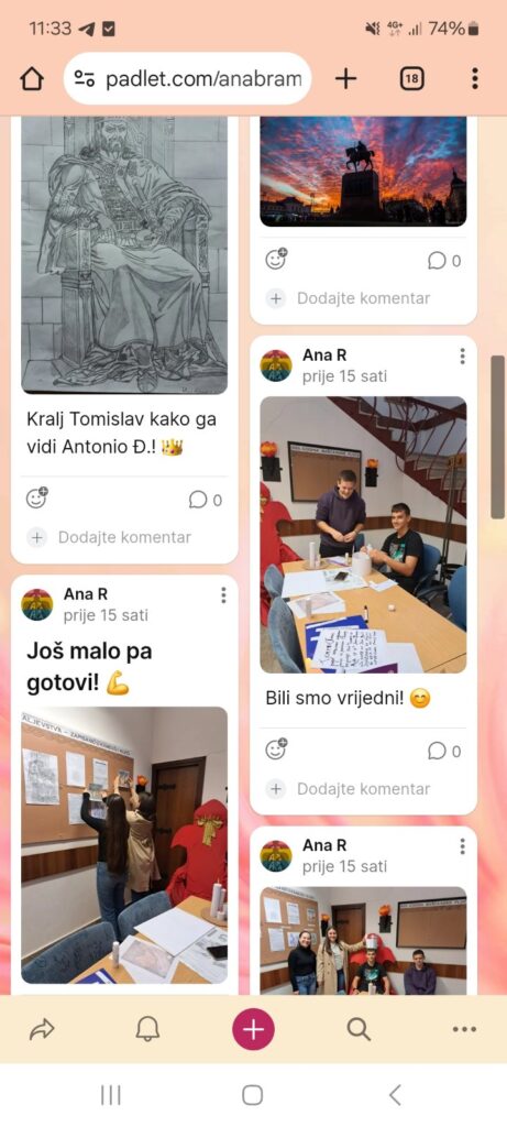 Četvrti razred, proučavajući portrete kroz povijest umjetnosti, imao je zadatak izraditi portret ili “selfie s kraljem Tomislavom” – tradicionalnim likovnim tehnikama ili uz pomoć digitalnih alata. Ovi radovi na duhovit, ali promišljen način povezuju prošlost i suvremenu vizualnu kulturu.