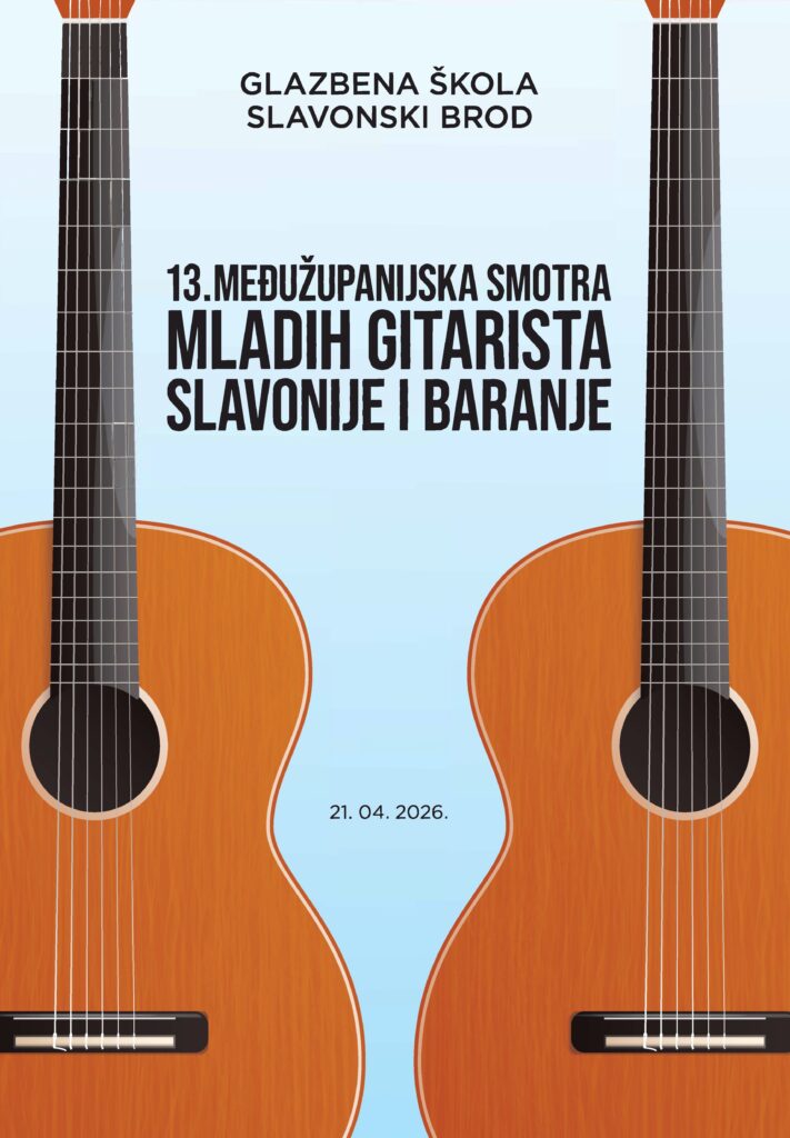 U utorak, 21. travnja Glazbena škola Slavonski Brod održava 13. međužupanijsku smotru mladih gitarista Slavonije i Baranje.